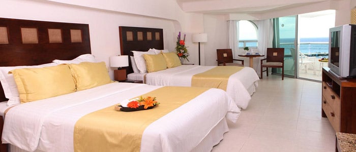 El Cid La Ceiba Beach Hotel offers affordable all inclusive Cozumel honeymoon, vacation and wedding packages. This resort is located in the southern area of the hotel zone and is just minutes from the quaint town of San Miguel where guests can shop and enjoy the flavor of town. El Cid La Ceiba is just six miles from the airport and a short drive from the mainland ferry that can take you to Playa del Carmen.